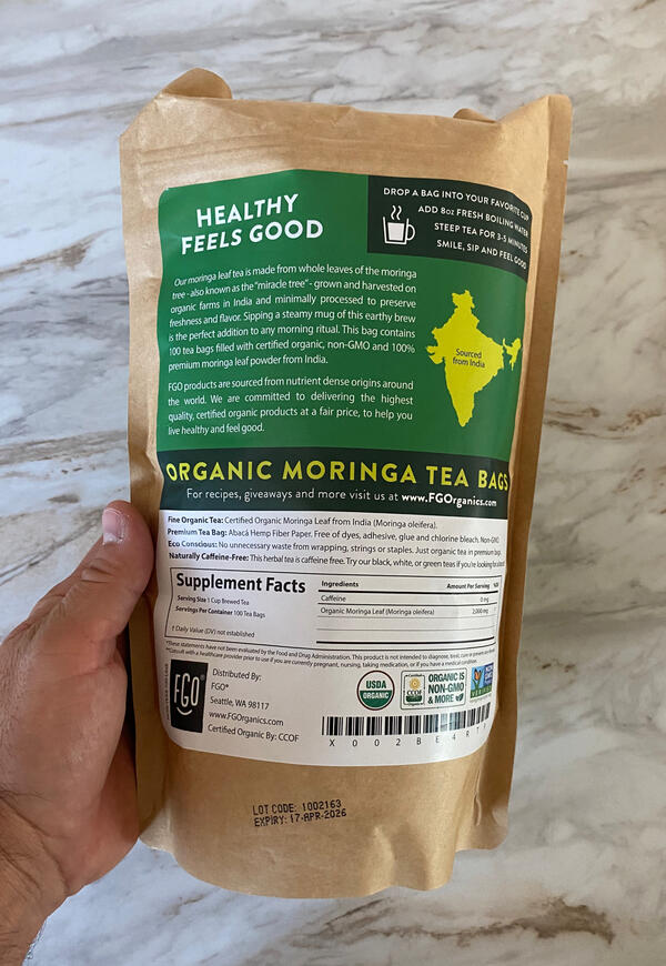 I have to warn you guys about this product because it is one of the highest selling moringa products out there!First let me start with the good. This is an organically sourced moringa, which is a good thing.Now onto the bad. Simply put, I don't trust these guys. The serving size says 2 grams per tea bag and after trying it I can tell you that there is no way you are actually ingesting 2 grams of moringa when you take this. If I were to guess based off the very light green color of the tea, it would be closer to 50 mgs. So yeah... way off and super shady.It comes with 100 tea bags, and costs $25 plus shipping, which sounds like a deal, but no bad product is worth any amount of money.